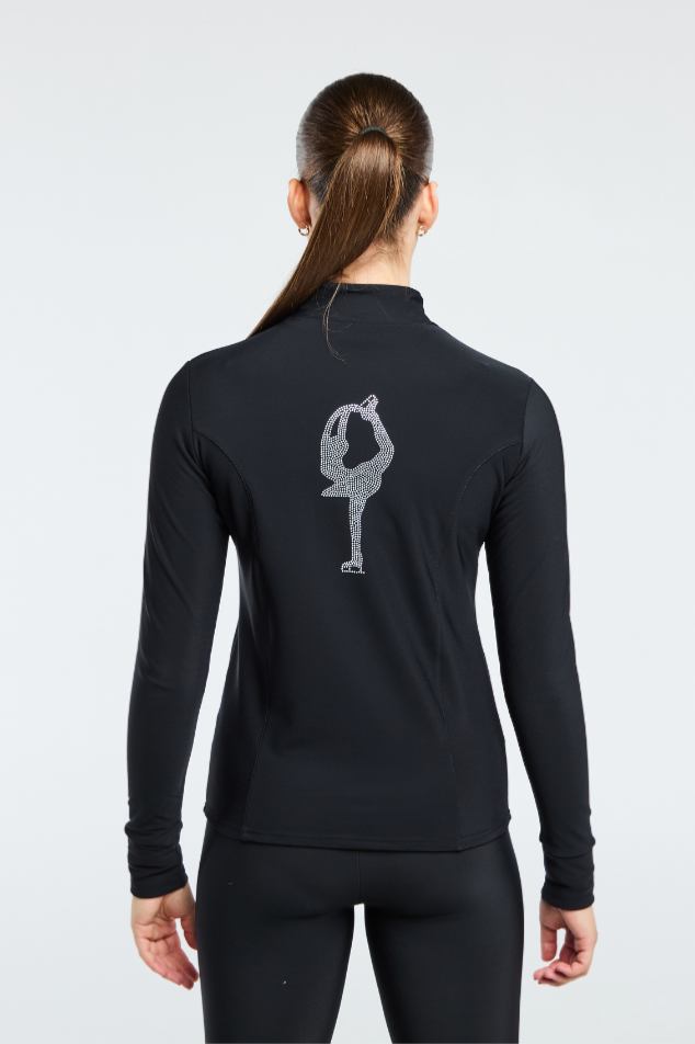 Veste de patinage doublée en intérieur polaire. Motif patineuse bielmann en strass métallique couleur argent